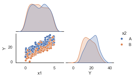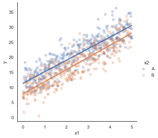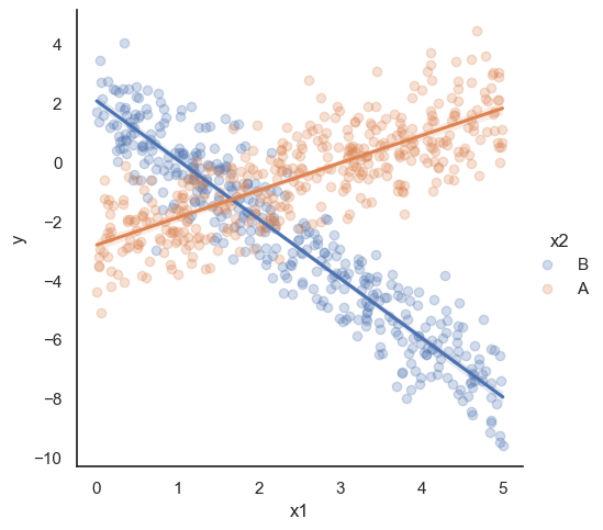 \] where \(b_1\) is the slope of the line. The sign of \(b_1\) reflects if the line is going up or down as we move to the right. Its absolute value equals how many units \(y\) changes when \(x\) changes by one unit. The value of \(y\) when \(x = 0\) is \(b_0\), the intercept.