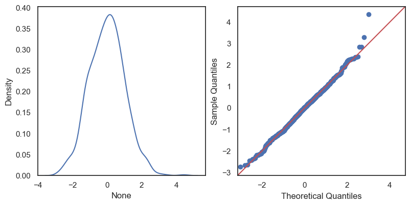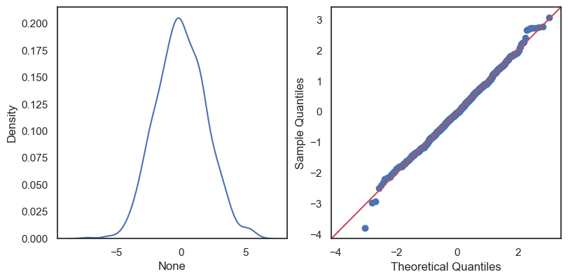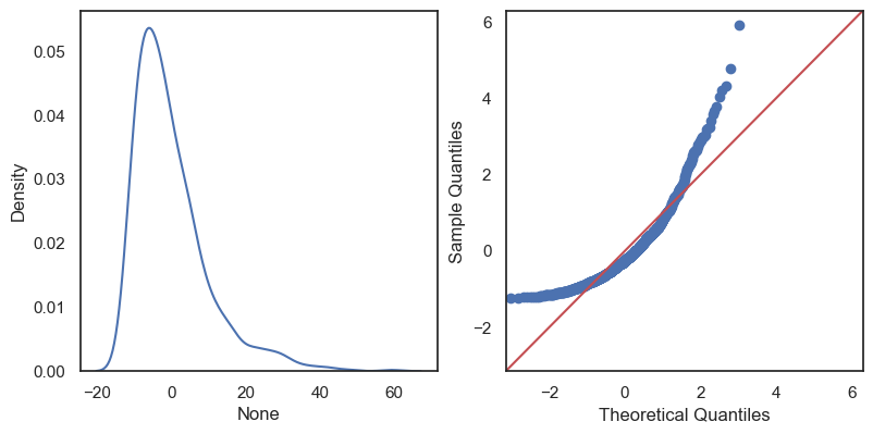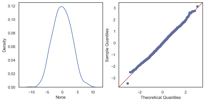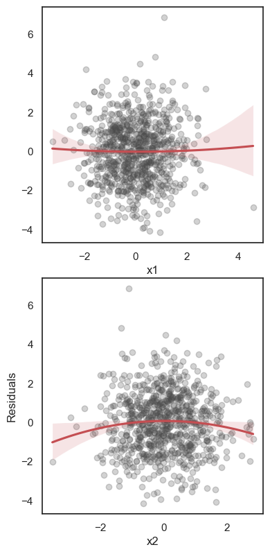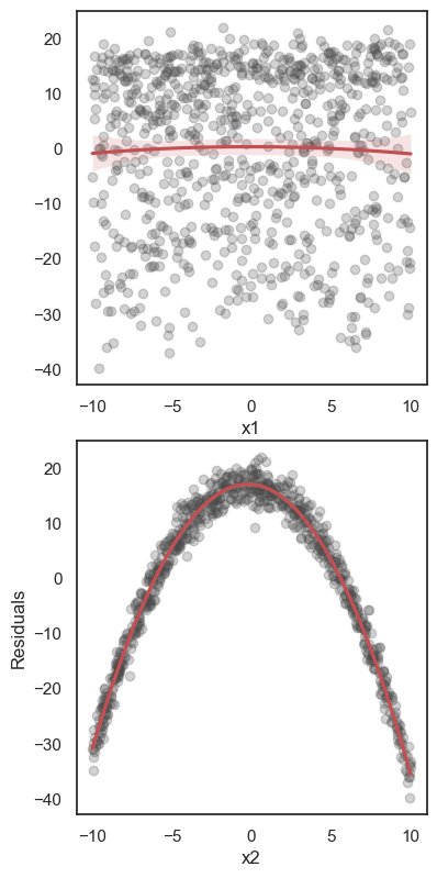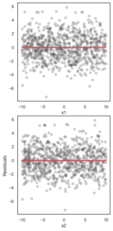 All these terms are illustrated in the figure below: + The red dots correspond to the original sample points, with (vertical coordinates) \(y_1, \ldots, y_n\). + The green dots are the predicted values, with \(\hat y_1, \ldots, \hat y_n\). + The residuals \(e_1, \ldots, e_n\) measure the lengths of the vertical segments connecting each red point to the corresponding green one.