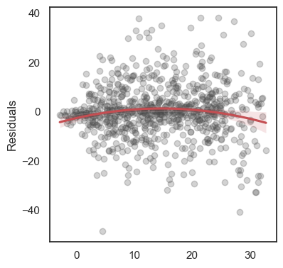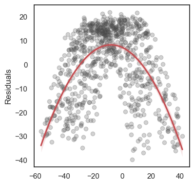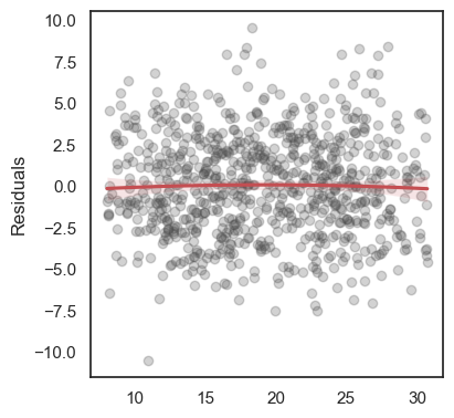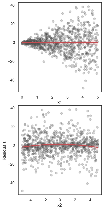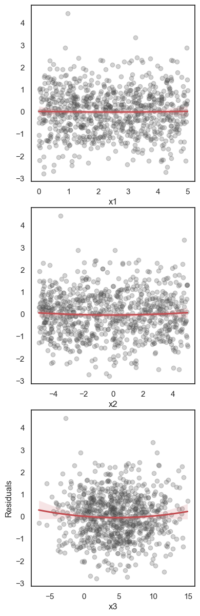 The residuals are the differences: \[e_1 = y_1 - \hat y_1,\,\quad e_2 = y_2 - \hat y_2,\quad \ldots\quad ,\,e_n = y_n - \hat y_n \]