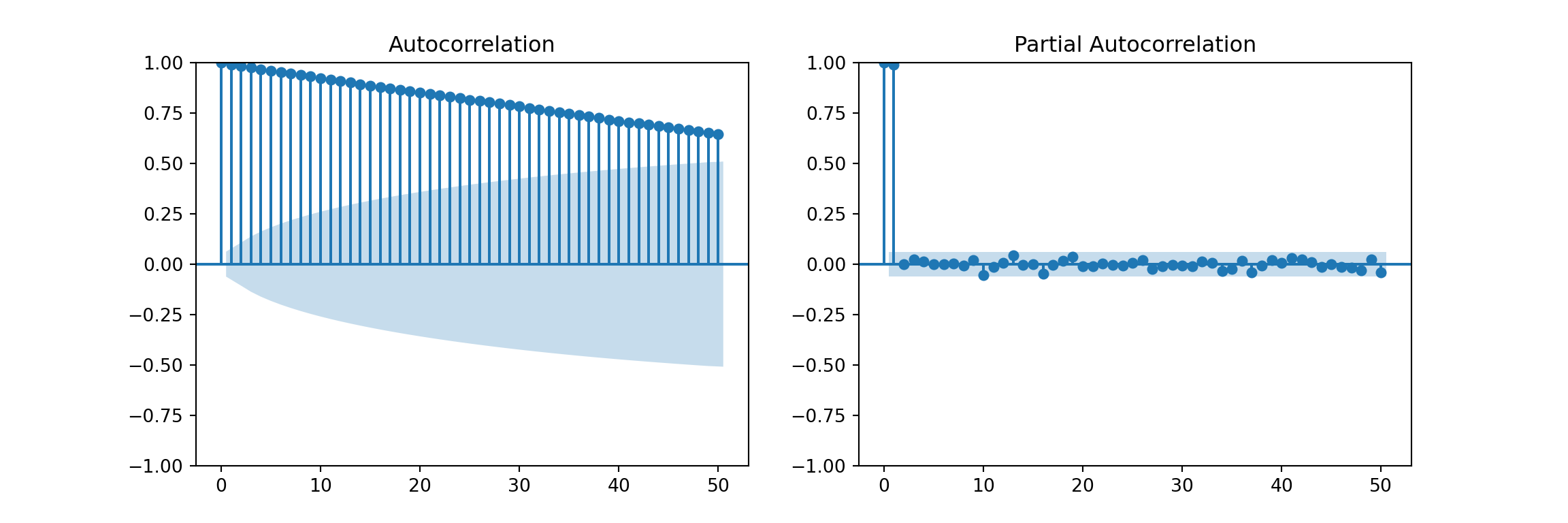 plot_pacf(rw_ts, lags=50, ax=axes[1], method="ywm")
