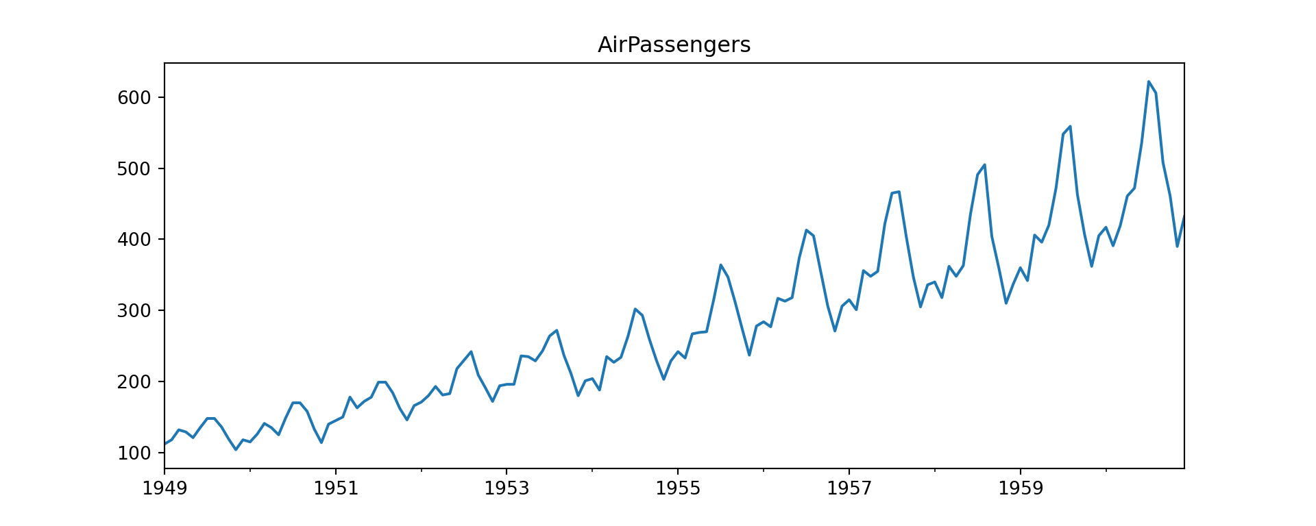We’ll use the classic AirPassengers dataset from R (available in statsmodels):