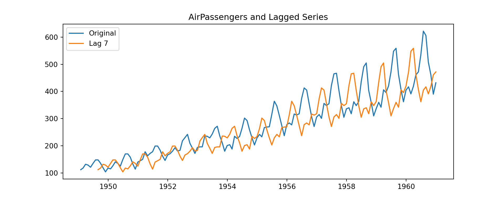 plt.plot(AirPassengers_lag[f"Lag {k}"], label=f"Lag {k}")
