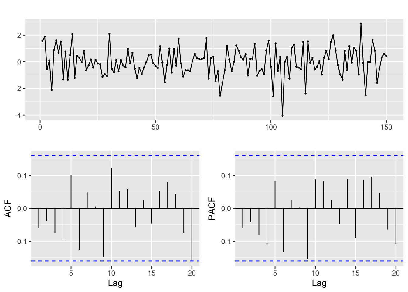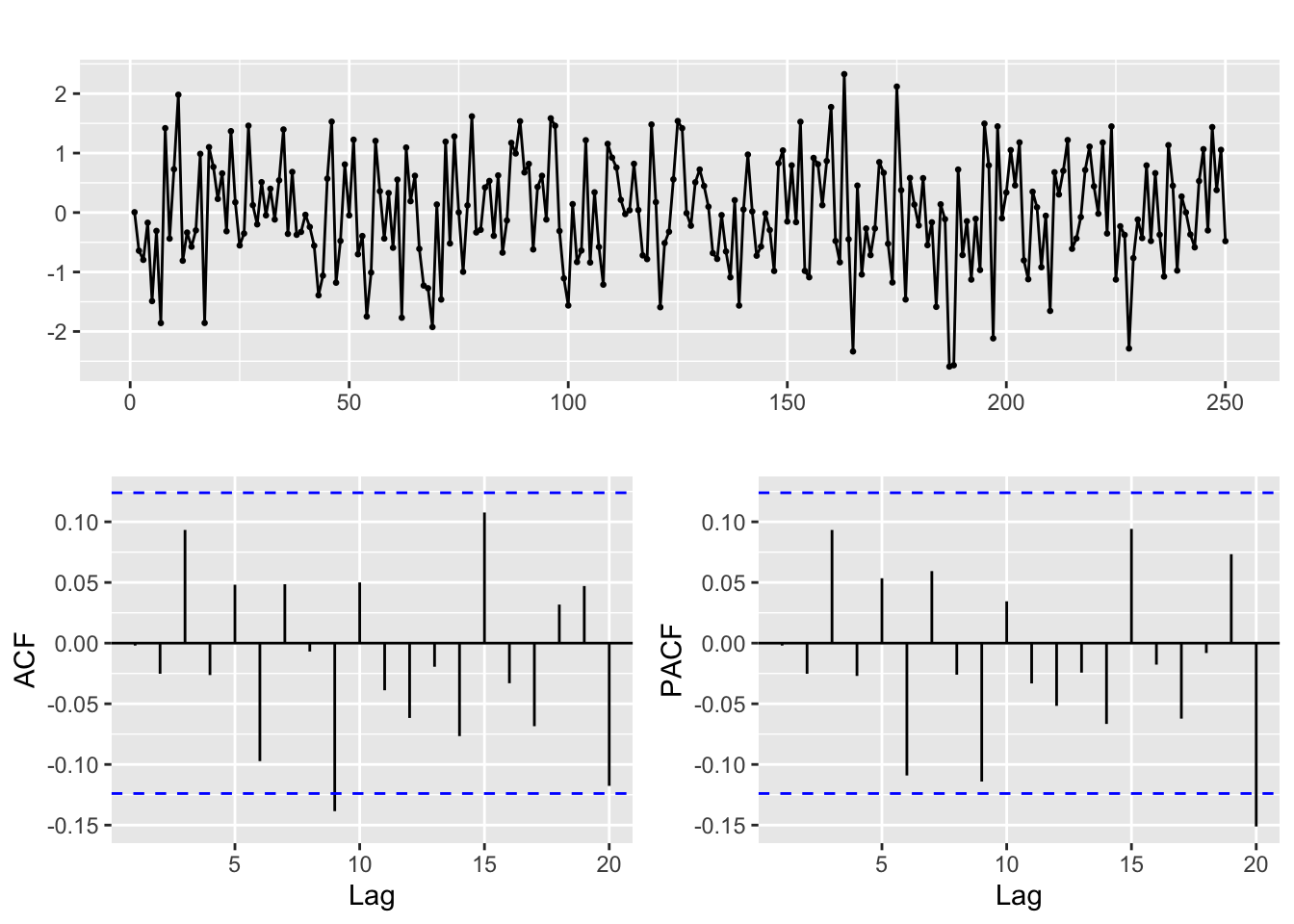 ACF and PACF of white noise