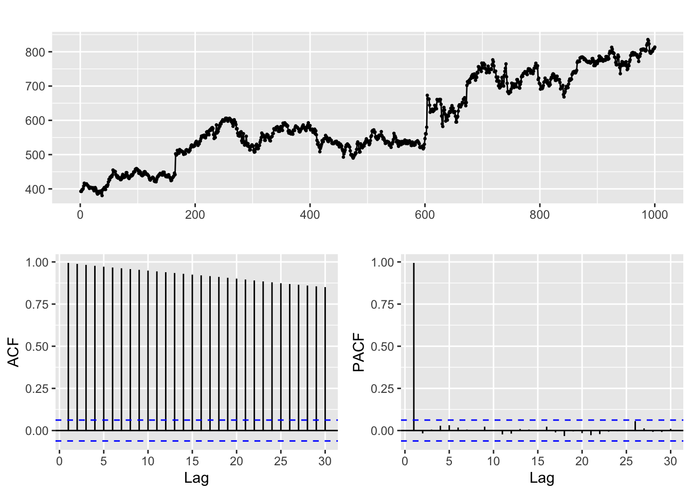 Example. Google stock closing price series.