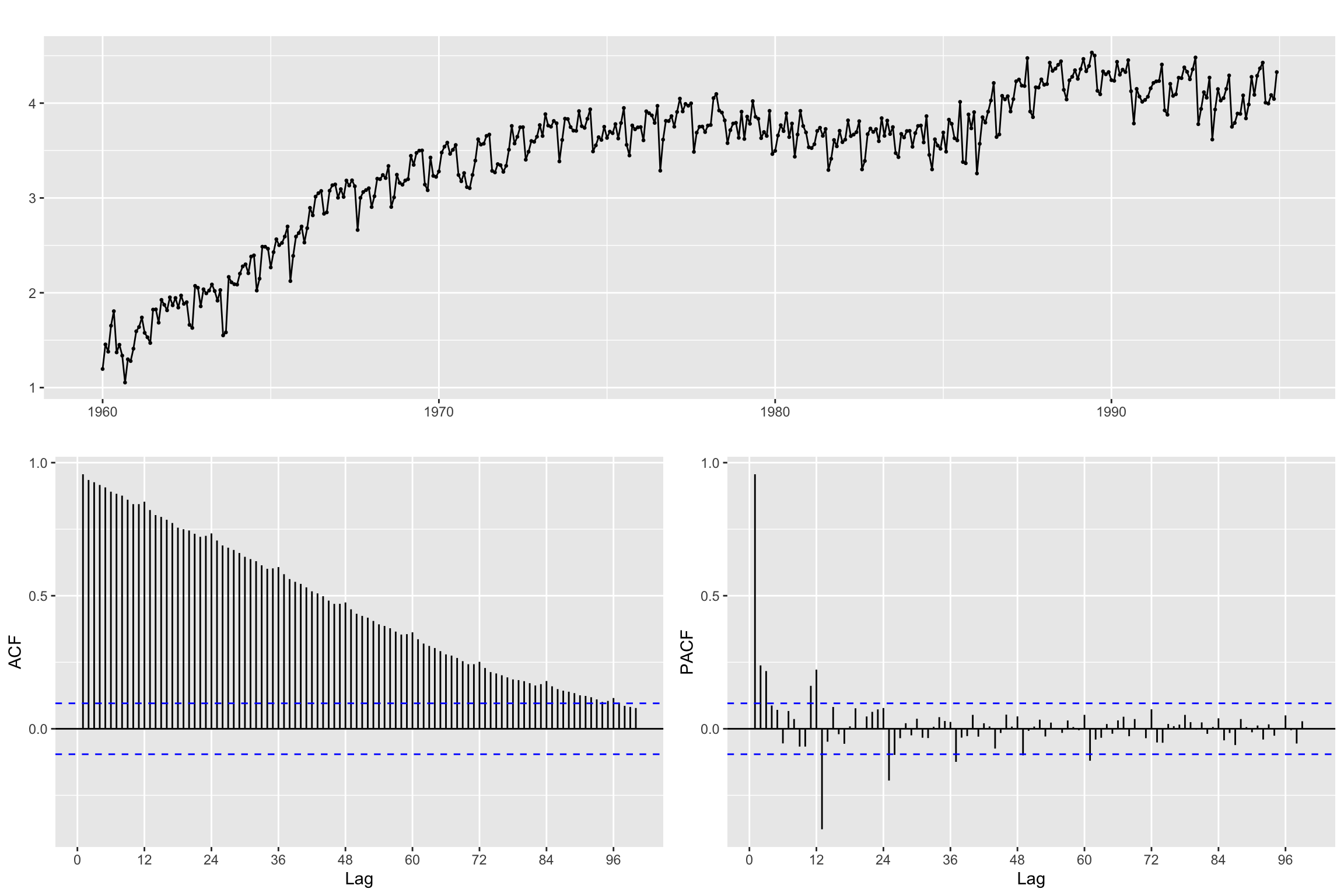 #recall if the ACF decreases very slowly -> needs differentiationggtsdisplay(z,lag.max = 100)
