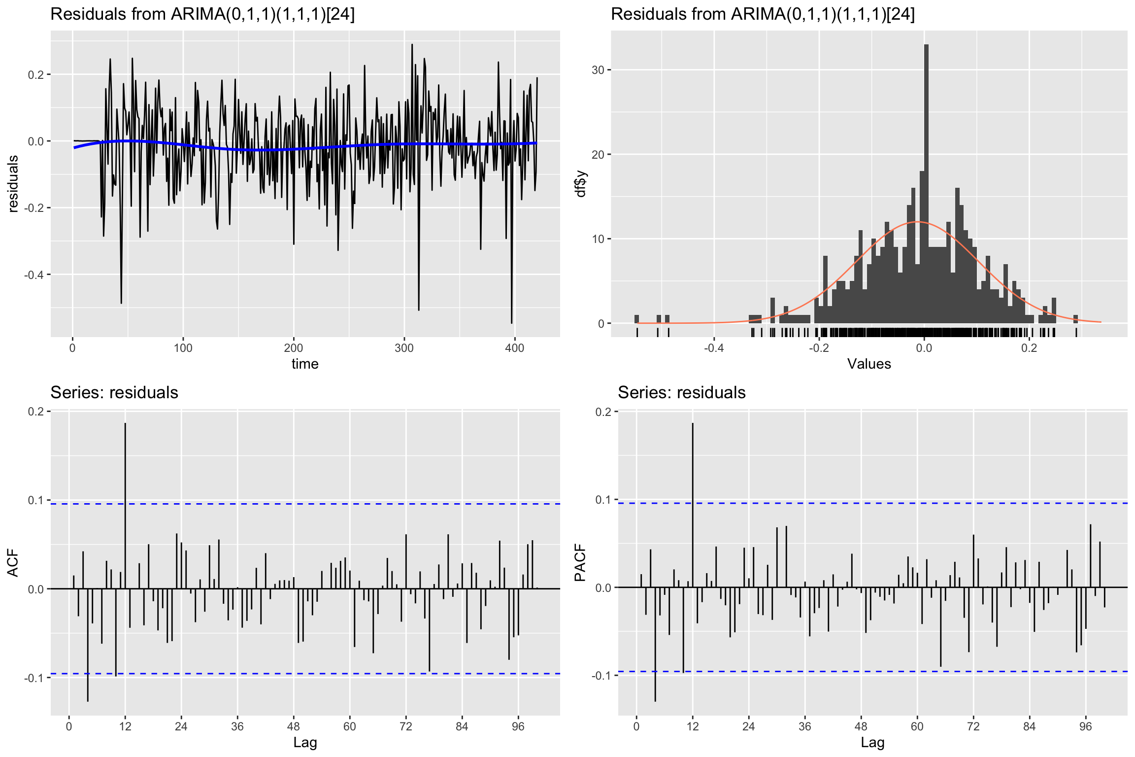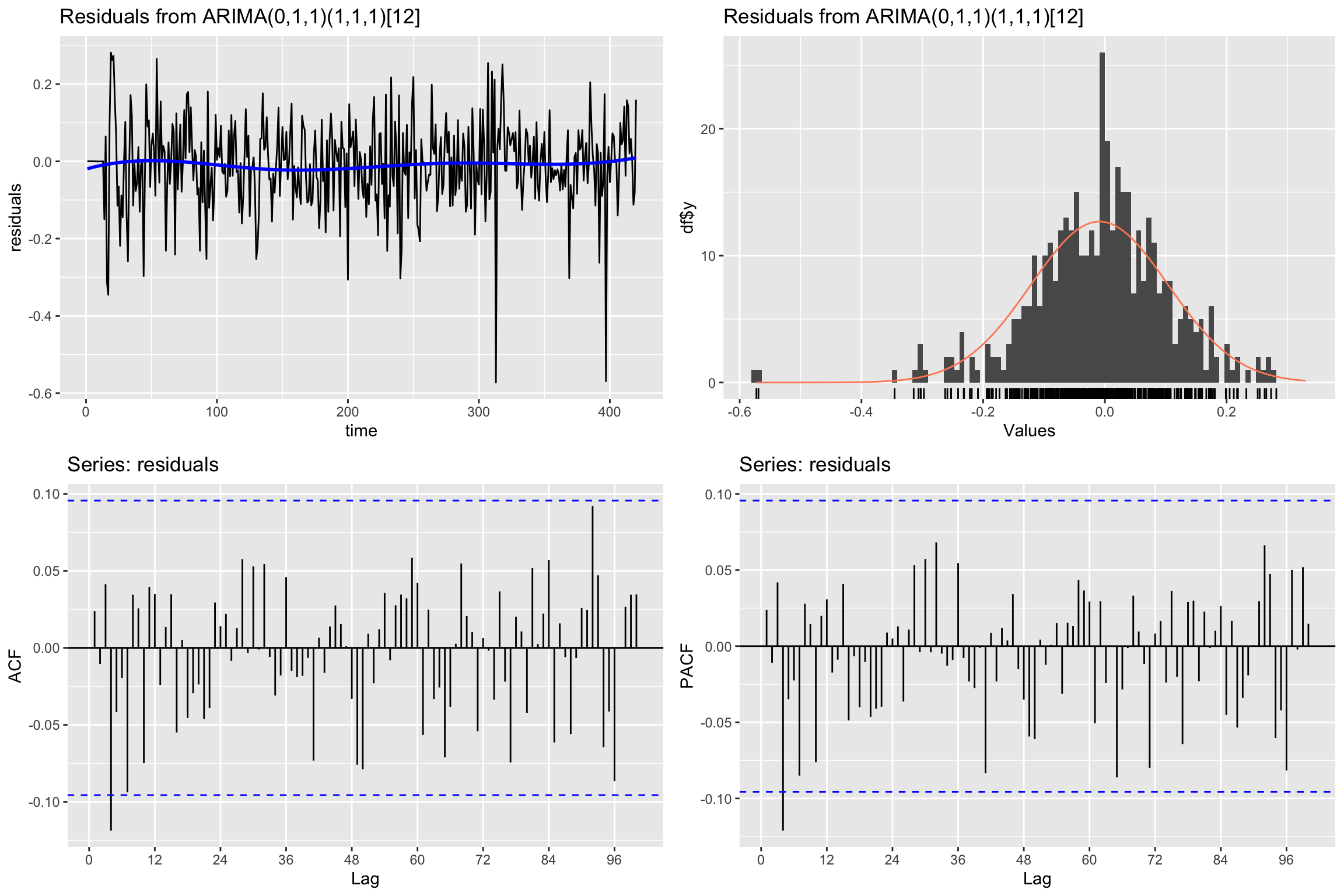 data: Residuals from ARIMA(0,1,1)(1,1,1)[12]